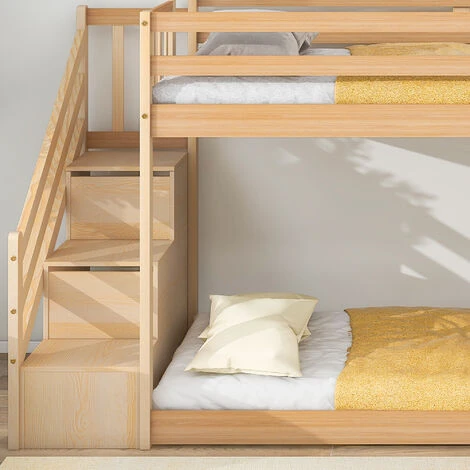 The bunk bed with stairs is practical and safe, and the storage function makes full use of the space. Functional and aesthetic, this bunk bed will enhance any bedroom.