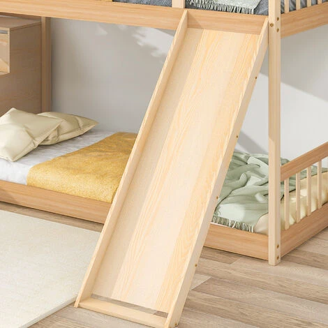 The bunk bed also has a slide, which brings more joy to children and makes full use of space planning. The slide can be installed on the left or right at will according to the space plan of the home.