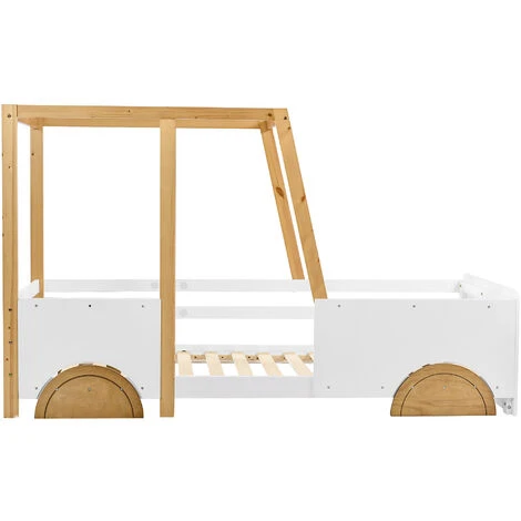The bed’s unique headboard, wheels and top frame create a fun jeep shape. It fulfills the child’s desire to use a toy car as a bed and makes them sleep better, like driving a jeep in a dream.