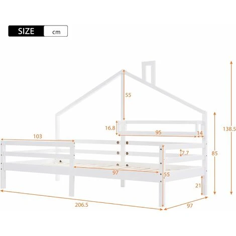 Premium materials: This pure and rustic Scandinavian style house bed is made of pine wood and high quality. With years of experience, this bed gives you stability and comfort. The paint on the surface of the cabinet is safety certified to ensure a harmful substance-free environment and the health and safety of users.