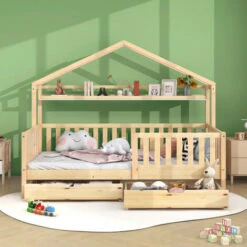 Wickey Kid’s Bed, Loft Bed Crazy Jelly Canvas Cover Single Bed 90 X 200 Cm, Children’s Bed – Blue