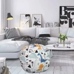 Kids Pouffe Warrior Footstool Upholstered With Storage Beige Samurai