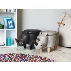 Modern Faux Leather Stool Storage Solid Wood Animal Dark Grey Elephant