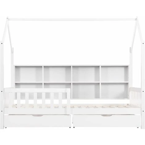 Multifunction This Scandinavian-style cabinet combines storage and bed functions. The house shape of this toddler bed has a storage area on the back for books, toys and small items. This cot also has two large drawers to store unused items under the bed. The functional design of this product is thoughtful and very practical.