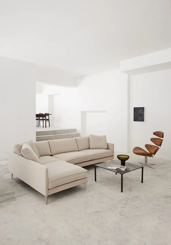 Fredericia’s Corona chair is an iconic classic designed by Poul M. Volther in 1964. The legendary lounge chair with an unforgettable silhouette has also appeared in a vast number of films and music videos. The Corona chair consists of four elliptical seat pads and a sturdy matt chrome swivel base, exquisite both in form and function.