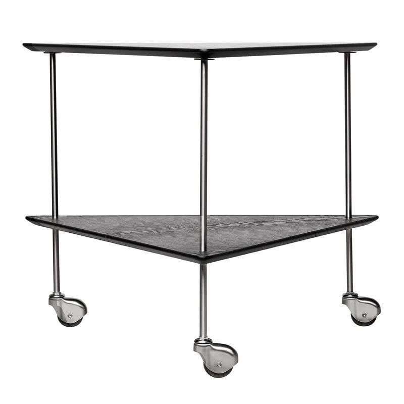 Fritz Hansen’s AJ Trolley consists of a slender metal frame with triangle-shaped ash shelves that can be used for serving tea or displaying your favourite decorative objects. Designed by legendary Danish architect Arne Jacobsen as a tea trolley for his own home, the piece has a distinctively architectural, modern appearance that still looks just as fresh and fascinating as it did back in the 1950s whether used as a practical serving trolley or sophisticated side table.