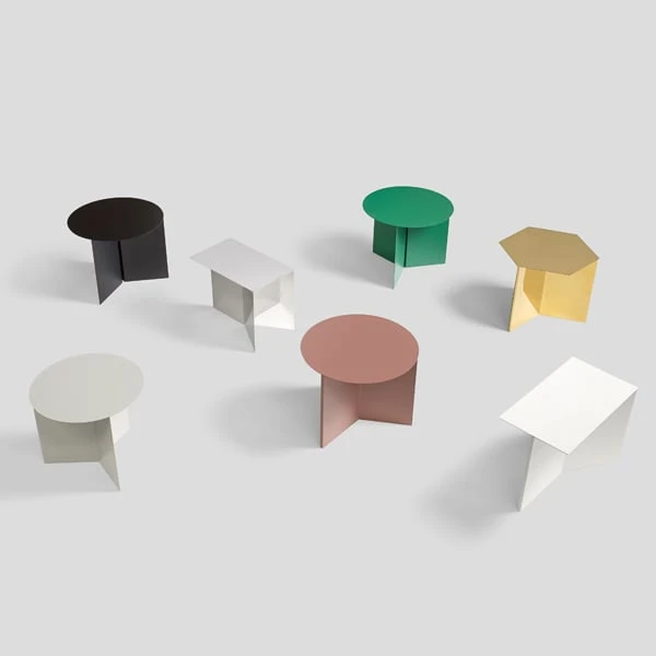 HAY’s Slit table is a simple metallic coffee table with a delicate design inspired by Japanese origami art. The round tabletop is supported by a geometric frame that resembles a folded paper origami. Use the Slit tables alone, in pairs or as beautiful clusters formed by different colours and shapes.