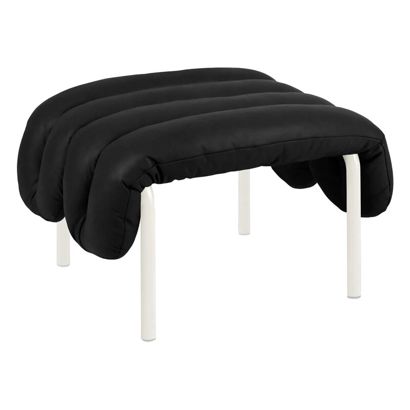 Hem Puffy Ottoman, Black Leather – Cream Steel