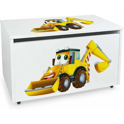 The chest has a hinged lid equipped with a protective mechanism against trapping fingers and a durable UV print of your favourite character. It can also serve as a bench to sit on.Made of 18 mm thick MDF.