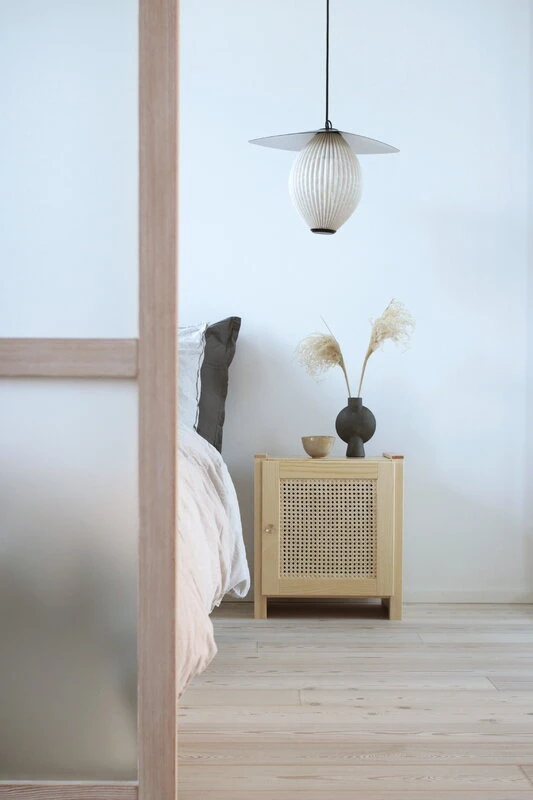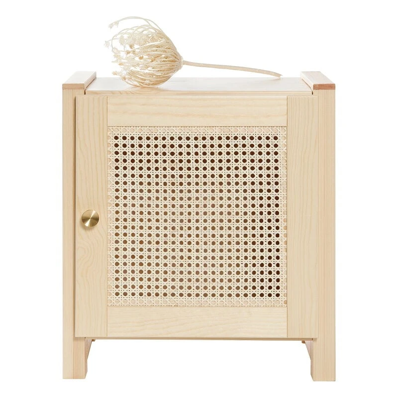 Lundia’s Classic nightstand with door charms with its beautifully simple design for many years to come. The nightstand is made of slowly grown Finnish pinewood that makes it a strong and ecological piece of furniture for your home. The Classic nightstand has a beautiful rattan weave door with a brushed brass handle. In addition to a table lamp or an alarm clock, the Classic nightstand has space for a lush houseplant and all your magazines, books and other bits and bobs, which can be stored on the open shelf and cabinet.
