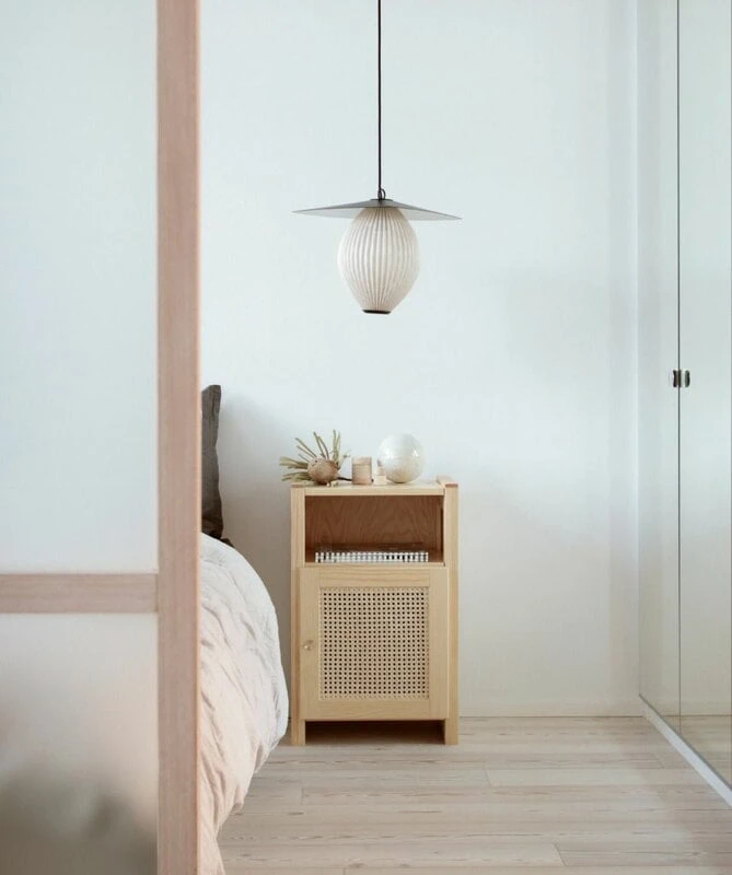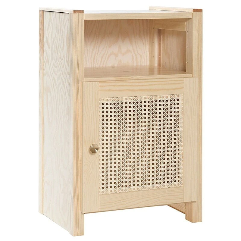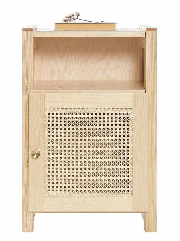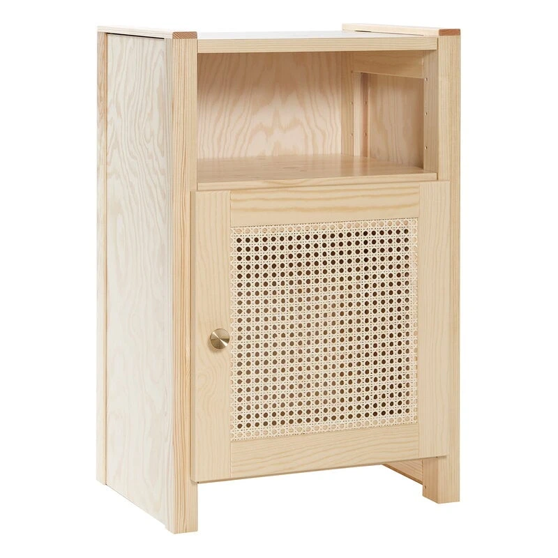 Lundia’s Classic nightstand with door charms with its beautifully simple design for many years to come. The nightstand is made of slowly grown Finnish pinewood that makes it a strong and ecological piece of furniture for your home. The Classic nightstand has a spacious open shelf and a beautiful rattan weave door with a brushed brass handle. In addition to a table lamp or an alarm clock, the Classic nightstand has space for a lush houseplant and all your magazines, books and other bits and bobs, which can be stored on the open shelf and cabinet.