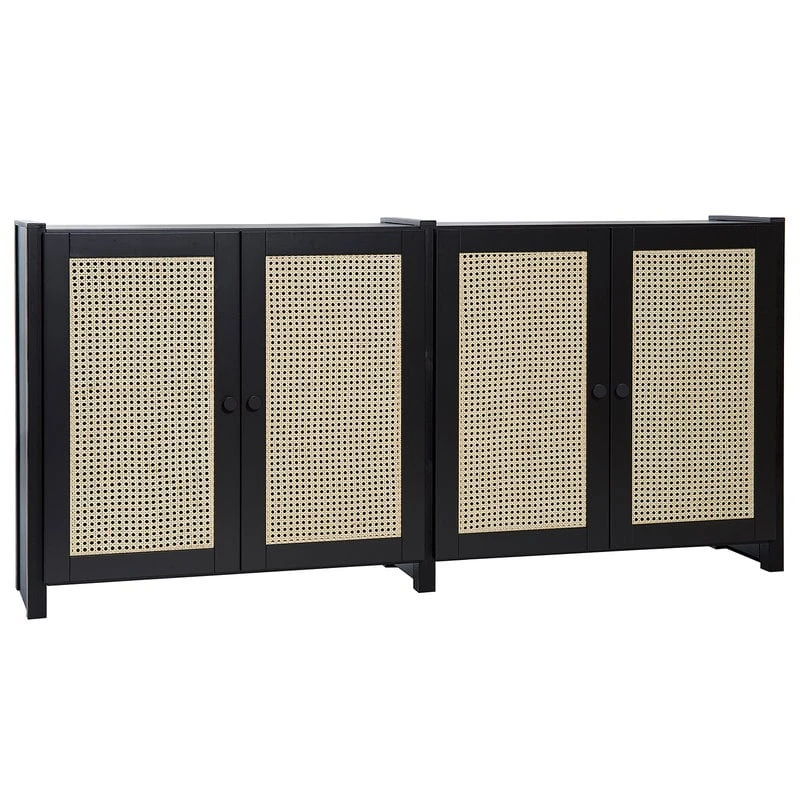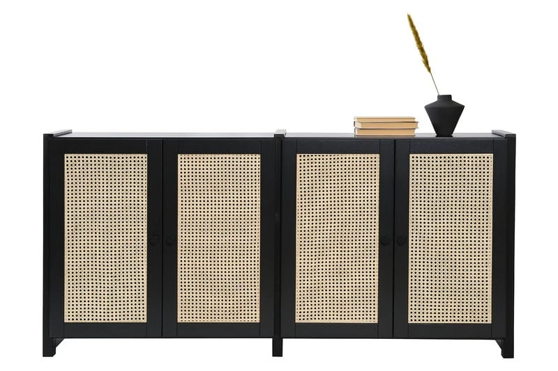 The Lundia Classic sideboard combines a trendy yet timeless rattan weave with the quality of Finnish woodworking. The cabinet doors are adorned with light, natural rattan weave, behind which is a solid wood shelf. The doors are perfected with matt-black metal handles and soft-close hinges.