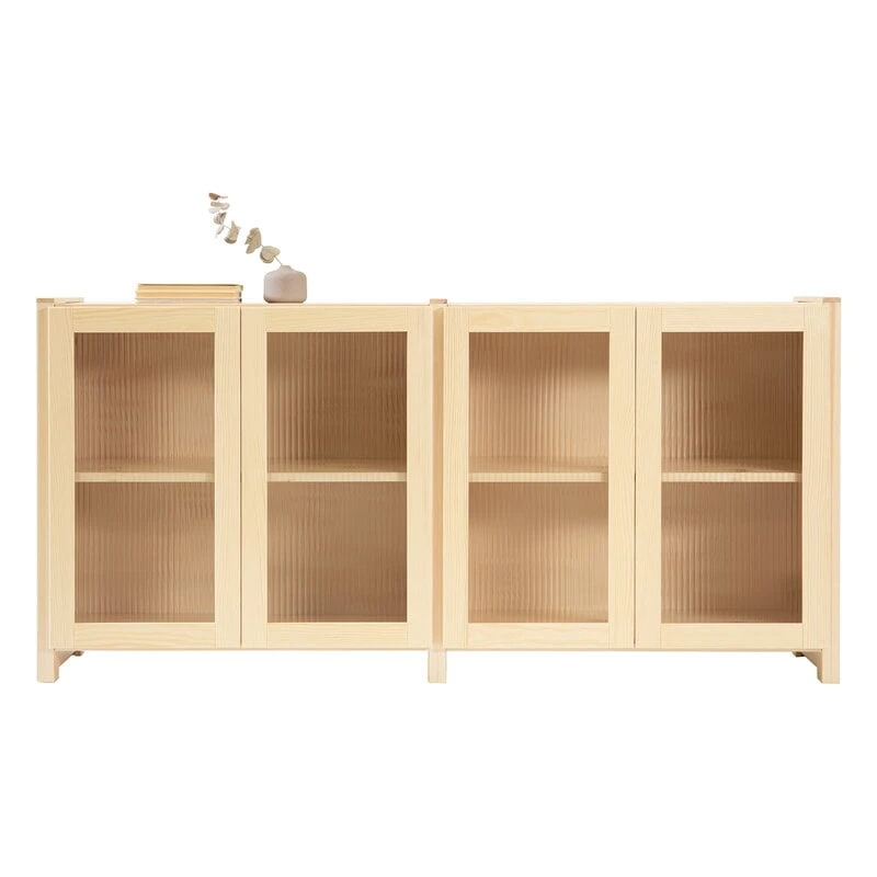 Complementing Lundia’s Classic collection, the refined sideboard with glass doors brings a touch of 70s-inspired elegance and exuberance to the décor. The sophisticated, reeded glass doors give the classic cabinet a light and airy look while keeping the contents hidden from view.
