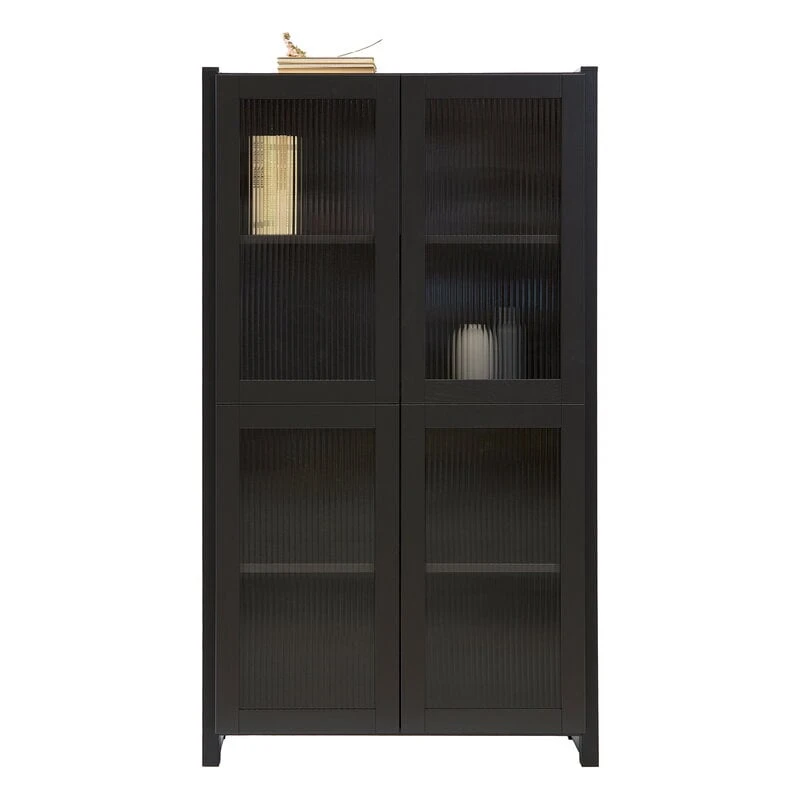 Lundia Classic Vitrine, Reeded Glass, 84 X 149 Cm, Black Lacquered