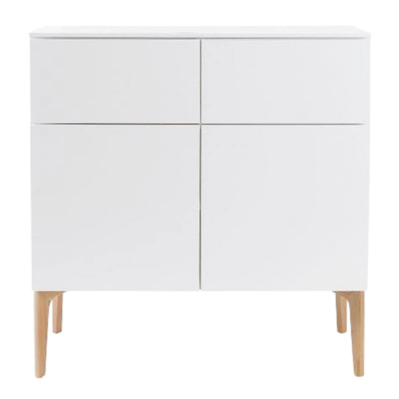 The Fuuga sideboard by Lundia is a clever and gorgeous storage solution for all spaces. The sideboard features a silky finish that repels fingerprints and makes the elegant piece especially durable – perfect for everyday use. Two drawers and a cabinet with an adjustable shelf make organizing easy, while the top plate and push-to-open doors give the ensemble a tidy, harmonious appearance. The Fuuga sideboard stands on a streamlined base crafted from natural oak.