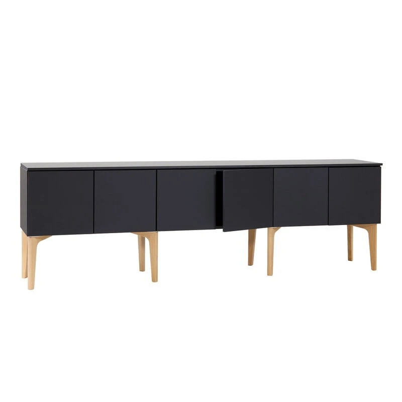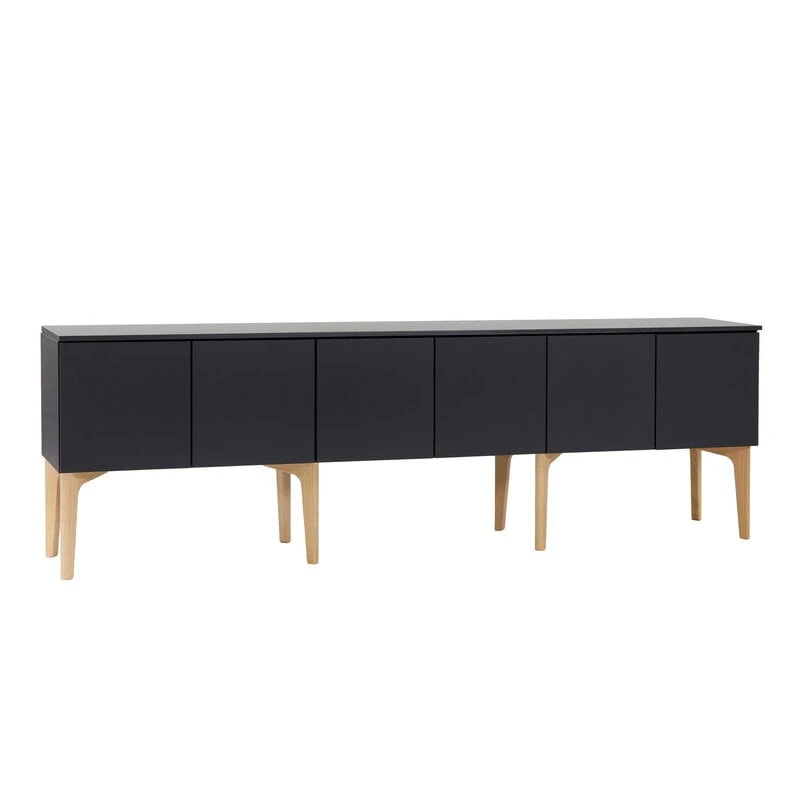 Lundia’s Fuuga TV table consists of three double-door modules with a silky finish that repels fingerprints and makes the elegant piece especially durable – perfect for everyday use. With plenty of storage space, the TV table also functions as a versatile storage unit, while the top plate and push-to-open doors give the ensemble a tidy, harmonious appearance. The Fuuga TV table stands on solid wood legs.