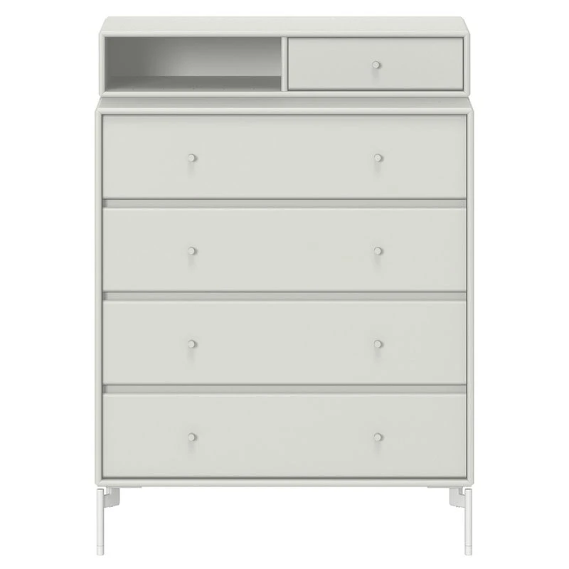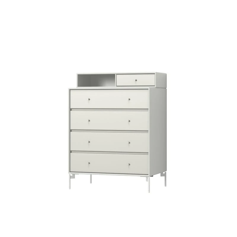 Montana Furniture’s Keep is a classic, simplistic chest of drawers for any room. Standing on sleek metal legs, the drawer is composed of four drawers and a top module with one small drawer and open shelf.