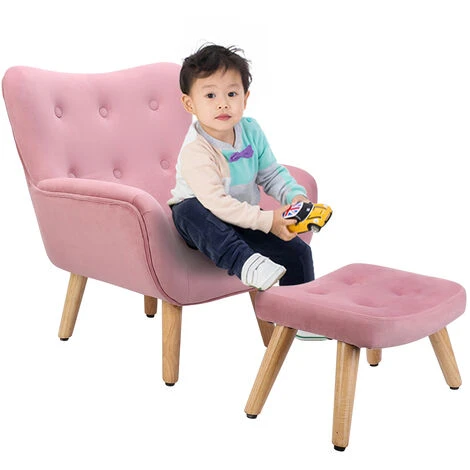 Soft Pink Velvet and Footstool – Professional child armchair is made of British standard fireproof velvet fabric,is tough and wear-resistant,delicate thickness, soft touch,not easy to fade,very dirt-resistant and easy to take care of,Pink is a girl’s favorite color, bring her a skin-friendly and comfortable armchair,Children’s sofa has a practical footstool,the stool surface is curved,comfortable,is very strong, stable,can be used alone