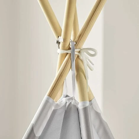 The tent and floor mat are made of polyester & cotton fabric; the poles are made of pine wood.
