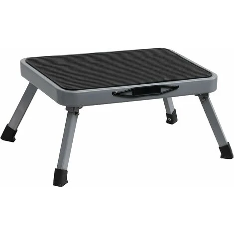Safe and Sturdy: Our foldable step stool is made of solid steel, with locks on each leg to ensure the step is stable when open and in use. The step stool has a black surface in ribbed vinyl plastic