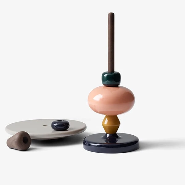 &Tradition’s Shuffle table MH1 is a flexible piece of furniture that can serve many uses. The beautifully shaped wooden blocks can be combined to place the tabletop at different heights, making Shuffle suitable for various kinds of spaces. By using playful colours and shapes inspired by old wooden toys, Norwegian designer Mia Hamborg has given a new life to the old Nordic craft tradition of turning wood.