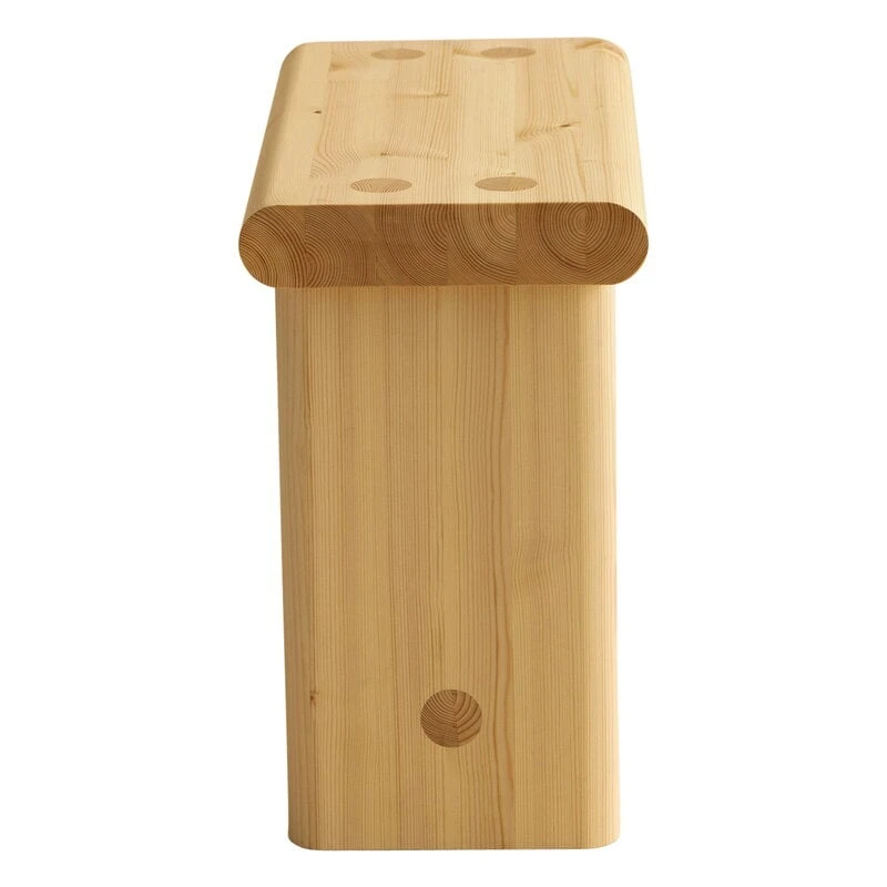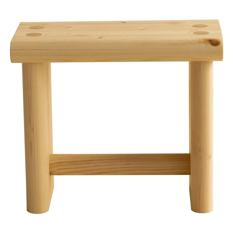 Vaarnii’s Ast stool, designed by Dimitri Bähler, is characterised by an unpretentious design that combines the rustic with the modern. The simple and robust stool consists of thick, sturdy pieces of pinewood, its only decorations being the gently rounded edges and the knots and lively grain typical of pine. The name of the stool, Ast, is German and means “branch”, alluding to the knots that underline the strong yet often overlooked material. In addition to an extra seat, Ast can be used as a nightstand or side table.