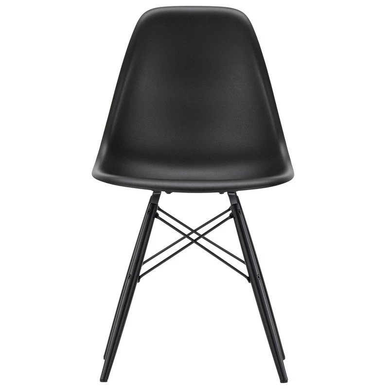 Vitra’s Eames DSW chair combines a light plastic seat with maple legs supported by a steel frame. The name DSW comes from the words Dining Height Side Chair Wood Base.Â