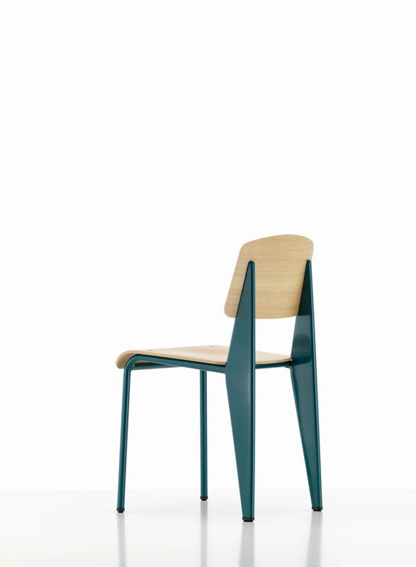 The greyish blue hue of the chair’s frame is part of Jean Prouvé’s original colour chart, which he developed himself, and it is called Bleu Dynastie. With its pleasantly shaped seat and backrest in oak plywood, the Standard Chair makes an excellent dining chair, and its design matches perfectly with Vitra’s EM Table, which was also designed by Prouvé.