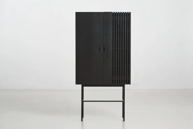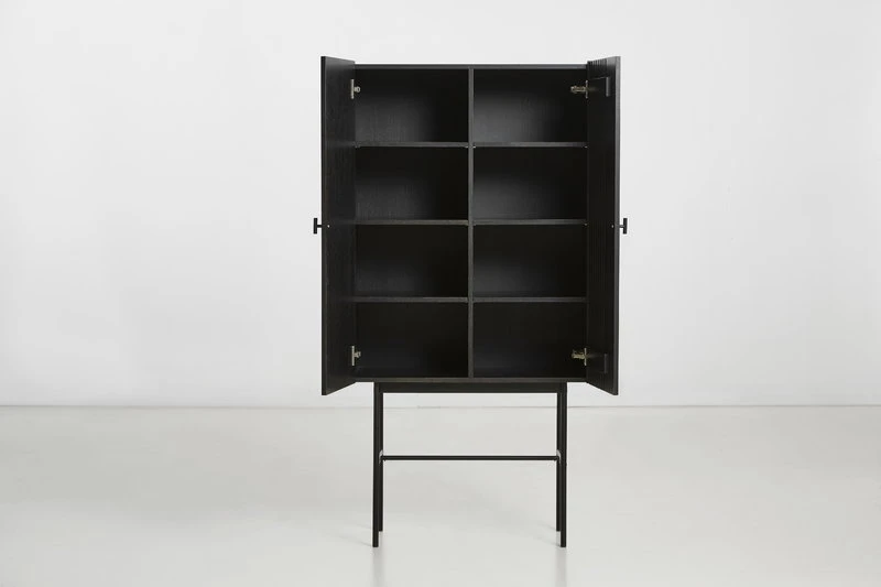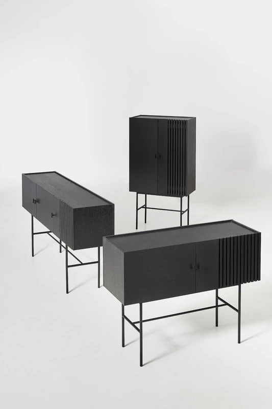 Array highboard by Woud combines a slim metal frame with an oak-veneered cabinet. Design studio Says Who found inspiration for the vertical slates of the door from modern architecture. Behind the doors, you’ll find eight convenient compartments for storing tableware, clothes, toys as well as office supplies. The play of light and shadows gives Array a refined but distinctive appearance that will complement all kinds of interiors.