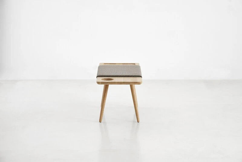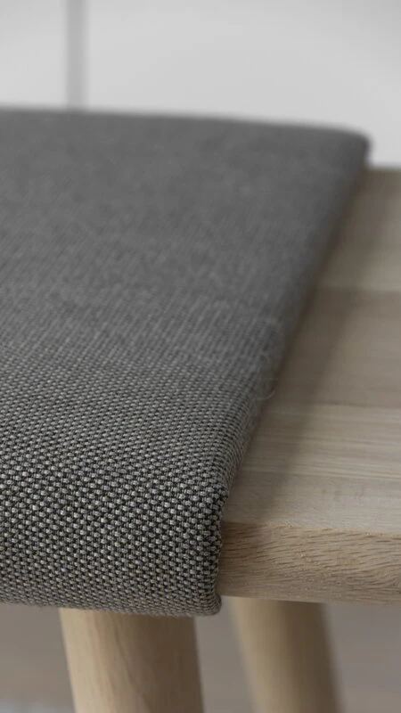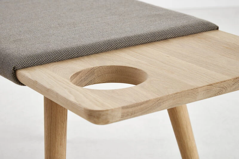 Woud’s Baenk bench charms with its light, minimalist design and nuanced texture of oak wood. The middle piece of the bench has been upholstered for extra comfort, and the round hole on the side can serve as an umbrella stand, plant support or decorative element. Created by Studio NUR, the Baenk bench is equally well suited for the hallway or any other room of your home.